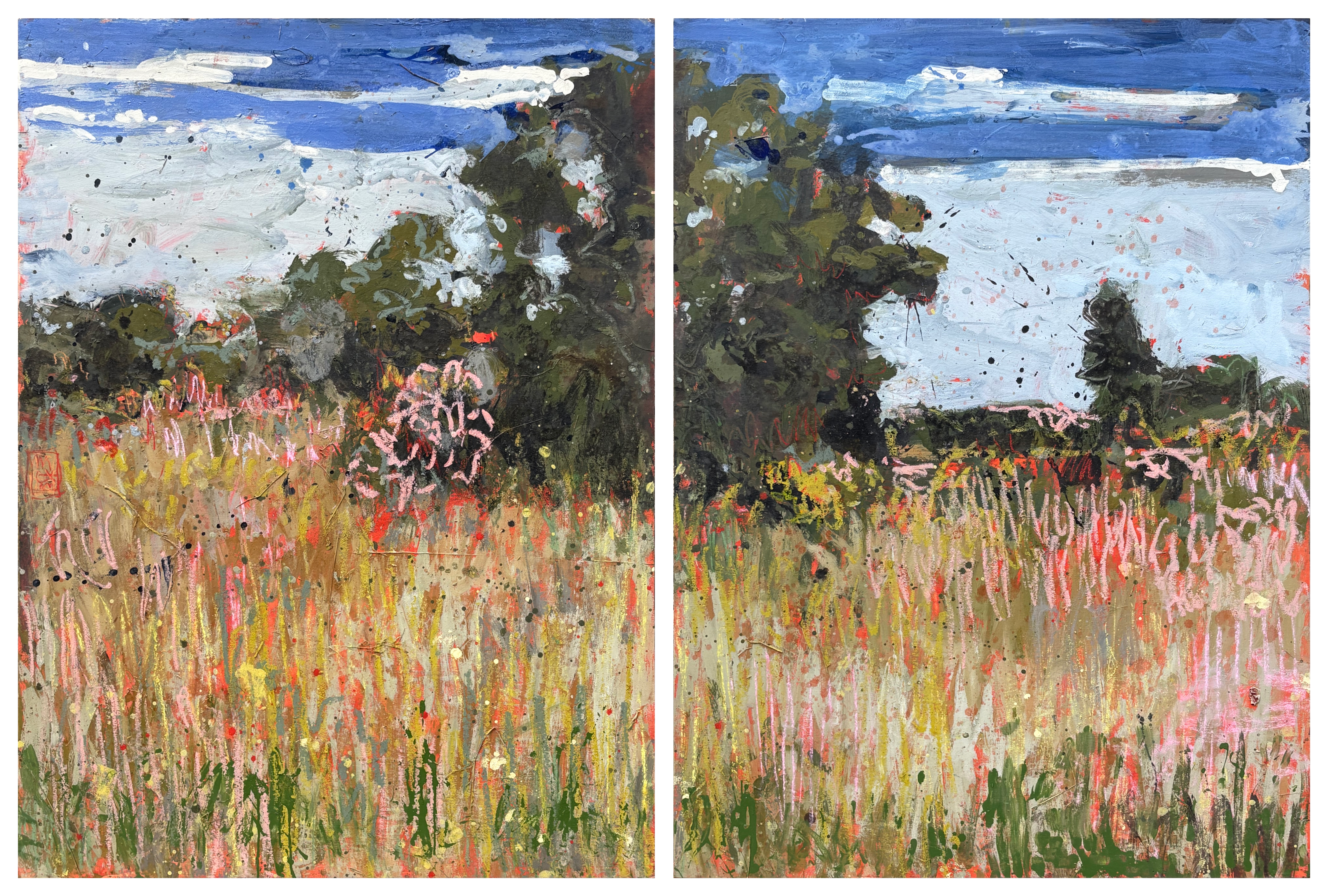 L’exposition est née du désir de faire dialoguer des œuvres de Claude Monet, à l’occasion du centenaire de sa disparition avec celles d’artistes contemporains, déjà liés à la Maison Caillebotte pour y avoir exposé et aimé le lieu. Tous partagent une même exigence, peindre au plus près de la sensation, révéler les forces invisibles à l’œuvre dans la nature. Donner forme à ce qui échappe au regard immédiat.