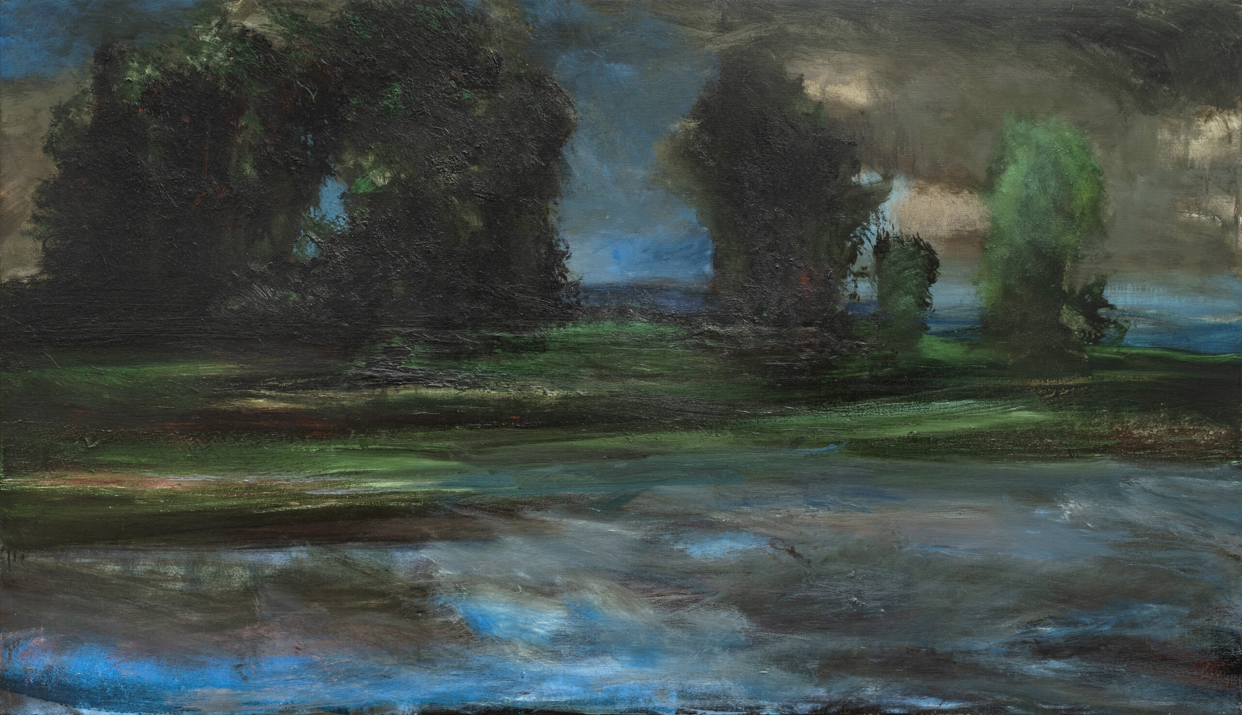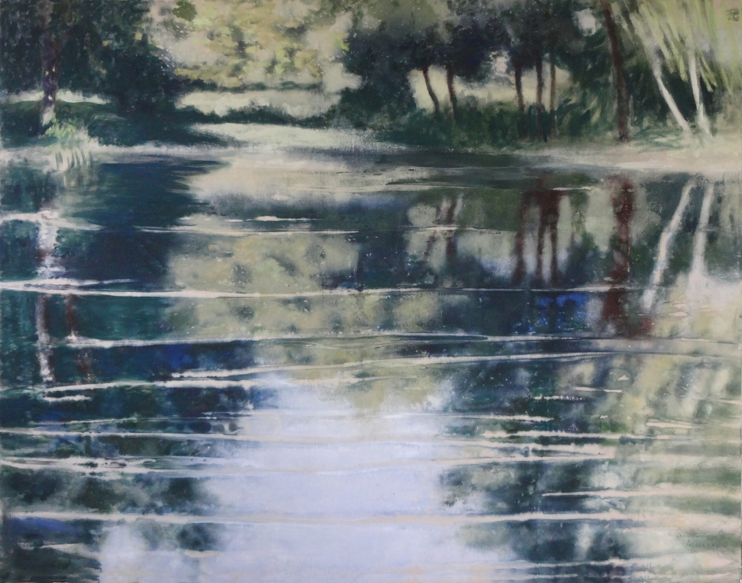 Selon les effets recherchés – sensation, théâtralité, révélation ou méditation – dialoguent avec les Nymphéas de Monet les profondeurs telluriques d’Evi Keller, l’intimité lumineuse de Jacques Truphémus, la mémoire et la forme chez Markus Lüpertz, les atmosphères suspendues de Malgorzata Paszko, l’hyper-perception de Youcef Korichi, les paysages gravés d’Érik Desmazières loin du bruit du monde, la puissance de la couleur chez Charlotte de Maupeou ou encore la densité picturale de Ronan Barrot.