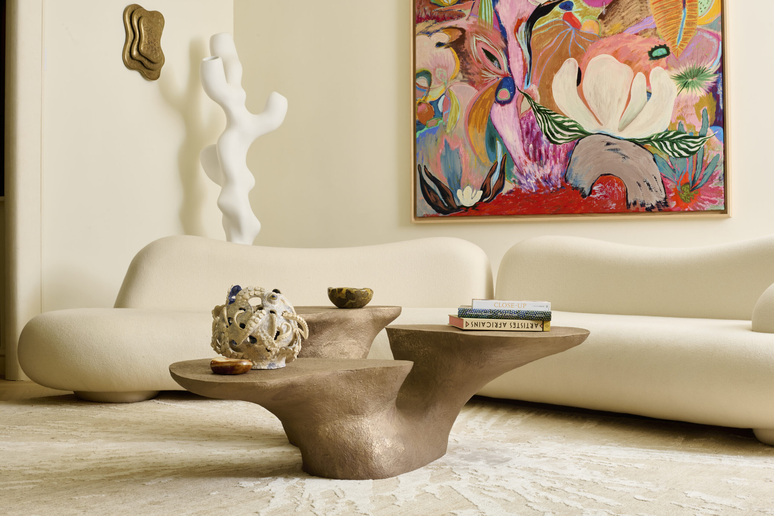 Parmi ses créations emblématiques, les tabourets Cèpe, réalisés en collaboration avec la céramiste Karen Swami, évoquent un univers organique et poétique. Ses fauteuils Dumbo, aux lignes généreuses et aux courbes accueillantes, invitent à la détente tout en ajoutant une touche de sophistication à tout intérieur. Pour explorer son univers rendez-vous à partir du 20 octobre dans sa première galerie parisienne avec un dialogue unique avec les œuvres colorées de l’artiste mexicaine Ileana García Magoda !
