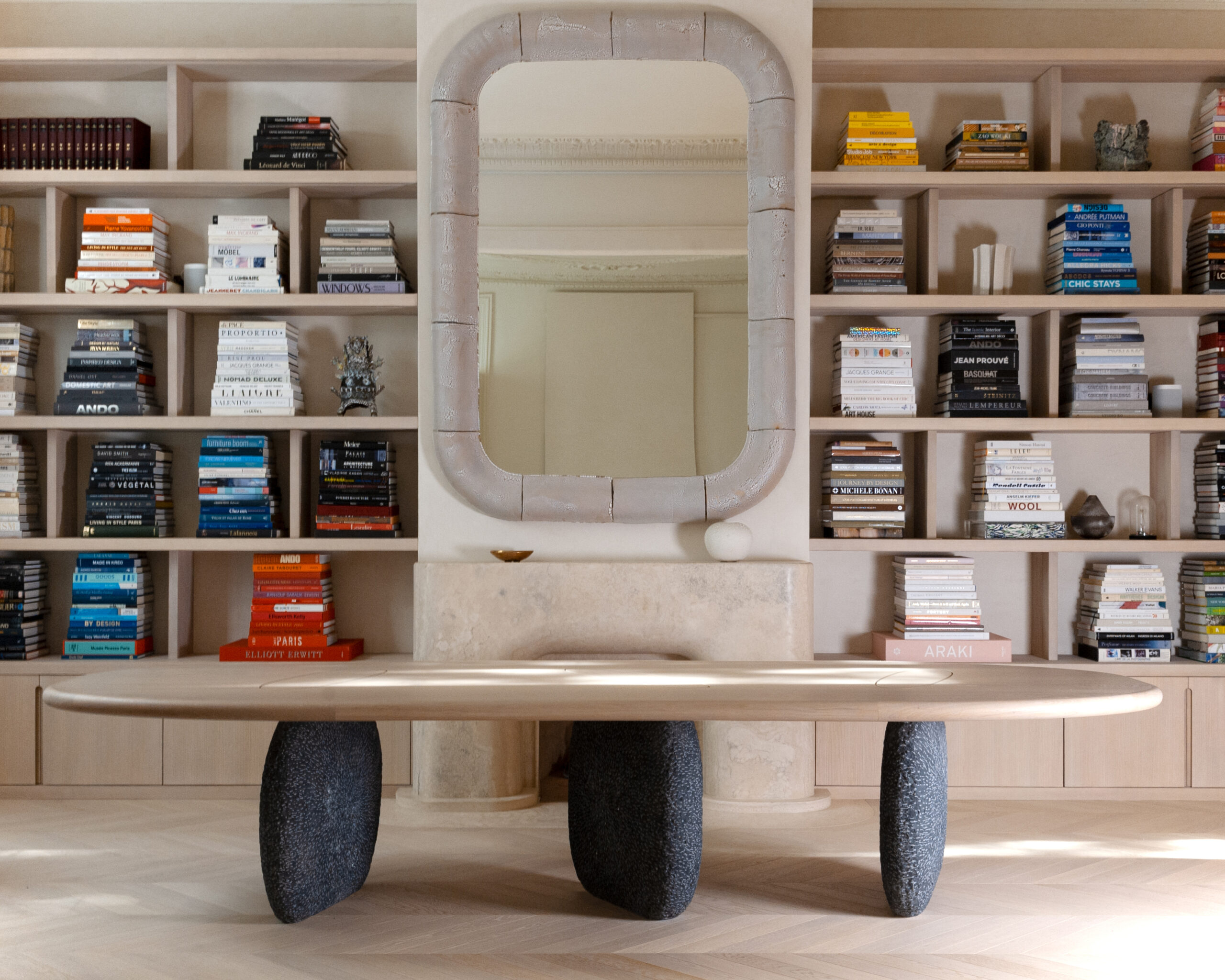 Aujourd’hui, Emma partage son temps entre Paris et New York, réalisant des projets d’envergure pour une clientèle exigeante. Ses collections incarnent son éclectisme élégant avec des pièces telles que des miroirs, appliques, tables, chaises et canapés, mettant en valeur des matériaux nobles comme le chêne, le bronze patiné et le marbre, façonnés par des artisans d’exception.